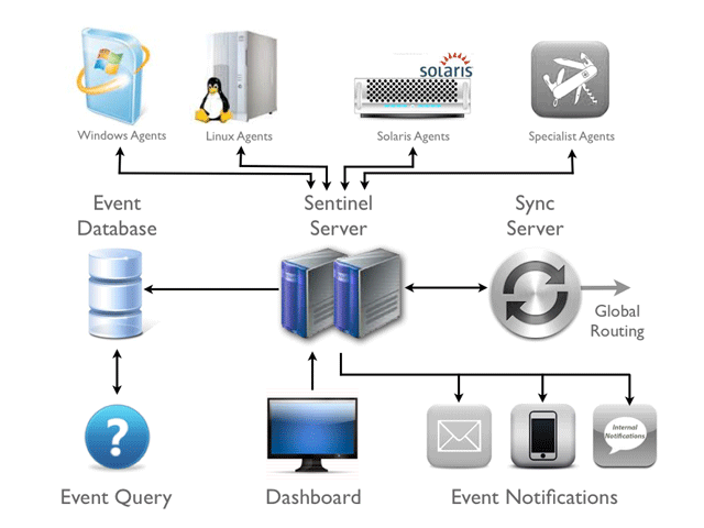 Sentinel monitors applications, computer systems, and networks throughout the enterprise.