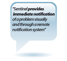 If failures or other critical events are detected, Sentinel highlights the failed component or system on its display dashboard, and has the ability to notify the appropriate personnel immediately via its event notification technology.